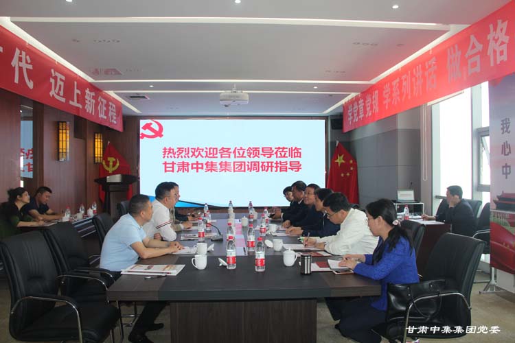 2019年5月21日上午,山西省非公經濟組織和社會組織工委副書記、市場監(jiān)管局黨組成員、副局長王國強,山西省市場監(jiān)管局非公黨建處處長朱志東一行6人,在省委非公經濟組織和社會組織黨工委副書記、甘肅省市場監(jiān)管局黨組成員、副局長肖建勝,甘肅省市場監(jiān)管局非公經濟組織黨建工作處處長劉玉圣,蘭州市市場監(jiān)督管理局黨組成員、副局長李繼軍,安寧區(qū)市場監(jiān)督管理局黨組成員、副局長蘇潤彬陪同下蒞臨集團黨委調研非公企業(yè)黨建工作,集團公司黨委書記、董事長周啟濤攜集團公司黨委委員向參觀調研組匯報企業(yè)黨建工作。